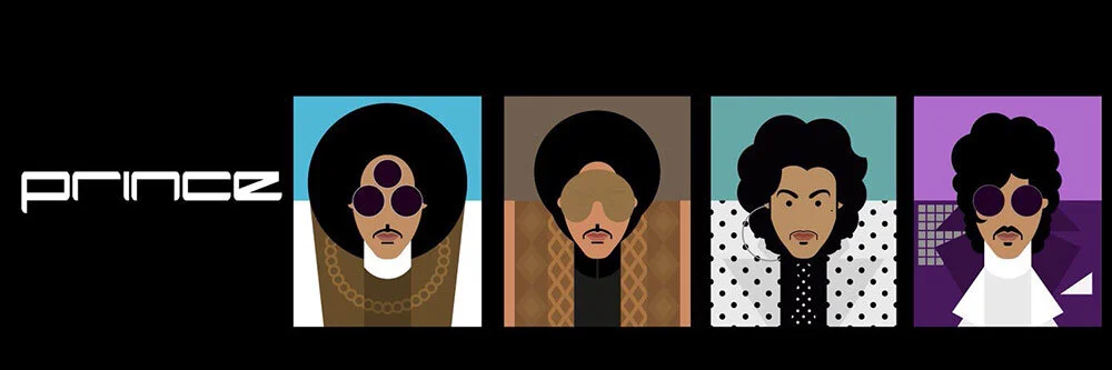 I worked with Prince for a couple of years, a partnership that started with a project called ‘The Many Faces of Prince’. The idea was to create a portrait of Prince, one for every year he's been in the music business, using only simple shapes. He saw the project, got in touch and we went on to create album art, merchandise, staging and more.